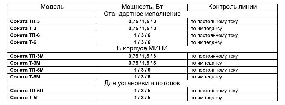 - Модели с контролем линии по постоянному току (совместимые также с оборудованием ВИСТЛ-М, ОКТАВА, LPA-EVA и др) или модели с контролем линии по импедансу (совместимые с оборудованием РУПОР, СОНАР, Тромбон, АРИЯ-ТС и др)