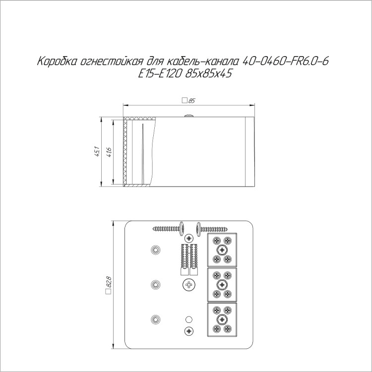 40-0460-1001-FR6.0-6 Коробка огнестойкая для кабель-канала Е15-Е120 RAL1001 85х85х45 (44 шт/кор) Промрукав