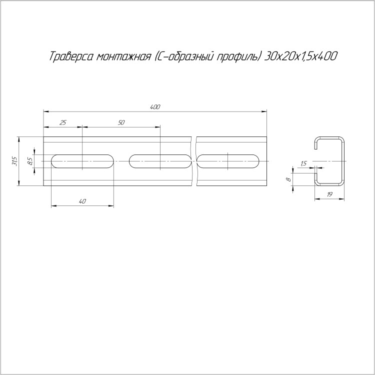 PR16.8561 Траверса монтажная (С-образный профиль) HDZ 30х20х400 (1,5 мм) Промрукав
