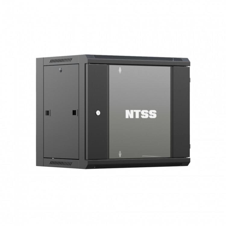 Легко собирающиеся настенный шкаф NTSS серии «W» с передней дверью, открываемыми боковыми стенками на защелках, задней стенкой и панелями пола и потолка. В комплекте 1 пара 19” профилей, уголки для поддержки оборудования.