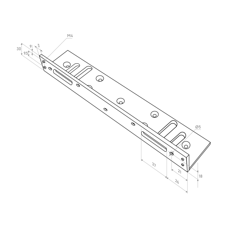 LH280 Novicam v.4402 - кронштейн L типа для электромагнитного замка DL280 с доп. отверстиями