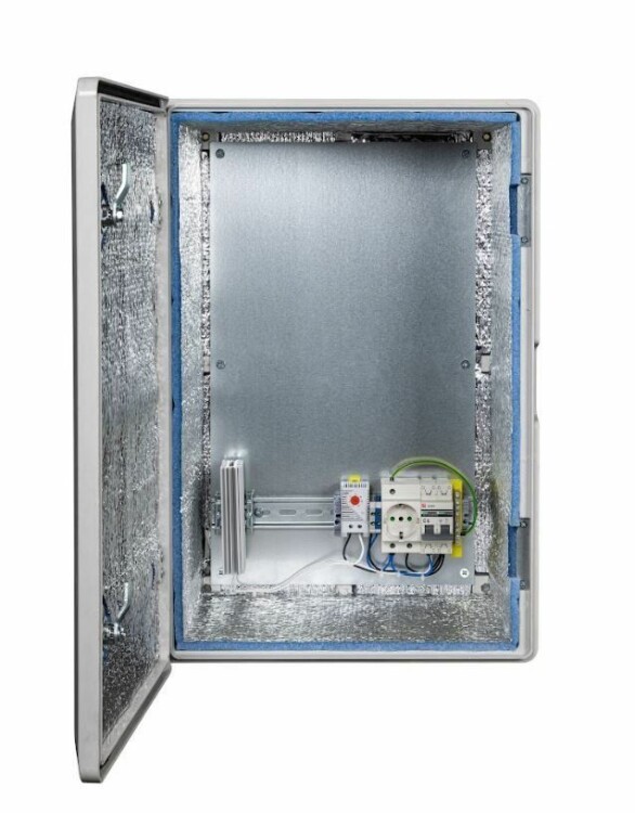Комплектация: утеплитель из Порилекса, замок 1 шт,ключ 1 шт, монтажная плата 1шт, гермовводы 2шт, розетка 1 шт, автоматический выключатель 1шт, термореле 1шт,нагреватель мощностью в 75 Вт 1шт.
