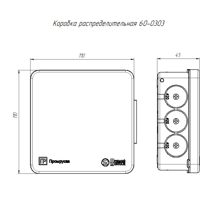 60-0303 Коробка распределительная для прямого монтажа двухкомпонентная безгалогенная (HF) 100х100х40 (90шт/кор) Промрукав