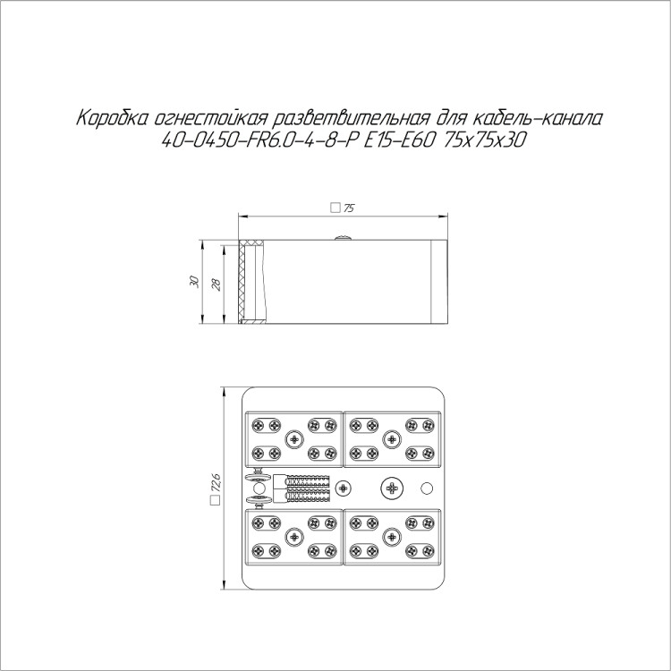 40-0450-9005-FR6.0-4-8-Р Коробка огнестойкая разветвительная для кабель-канала Е15-Е60 RAL9005 75х75х30 (87 шт/кор) Промрукав