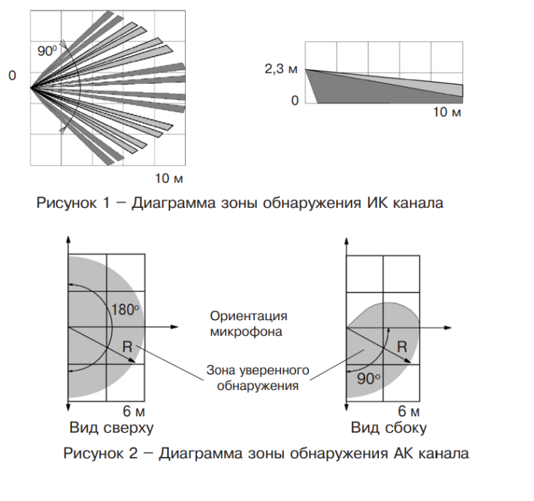 Совмещенный ИК+разбития стекла, 6м (АК), 10м (ИК объемный), с помехозащищенностью от домашних животных весом до 20 кг, 12В, -20…+45°С