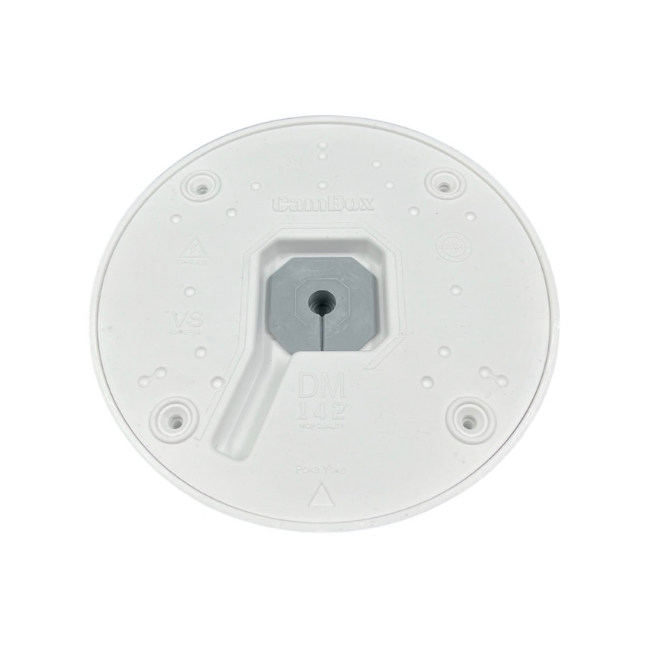 CamBox DM-142 WHT; Монтажная коробка для камер видеонаблюдения (белый), 147mm x 147mm x 50mm, пластик ABS/Poliamid, -40 +80С, насечки под крепеж основания камеры.