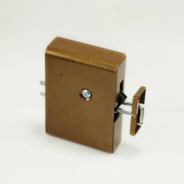 Электромеханический замок с толкателем и датчиком положения двери. Усилие удержания ригеля 250 кг. Нормально закрытый, напряжение питания DC 12 В/0,4 А, -30...+50 °С, цвет - коричневый