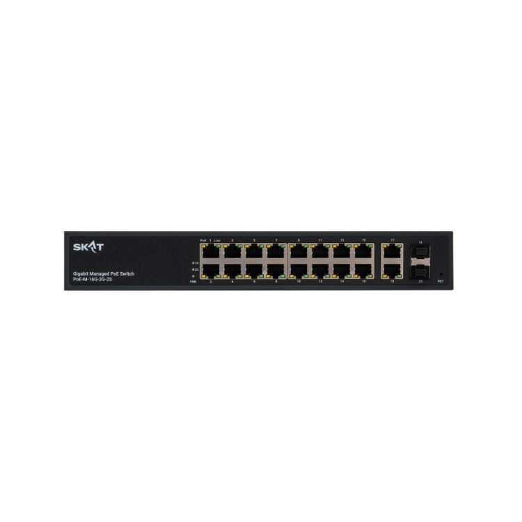 SKAT PoE-M-16G-2G-2S представляет собой специализированный управляемый PoE-коммутатор для построения управляемых сетей уровня L2+ в системах коммутации, видеонаблюдения, IP-телефонии и безопасности.