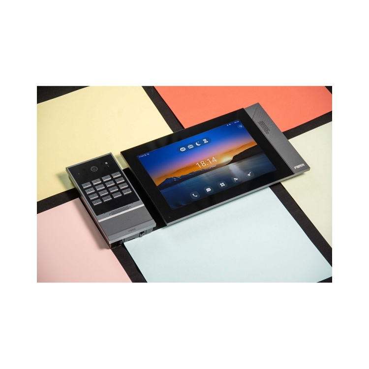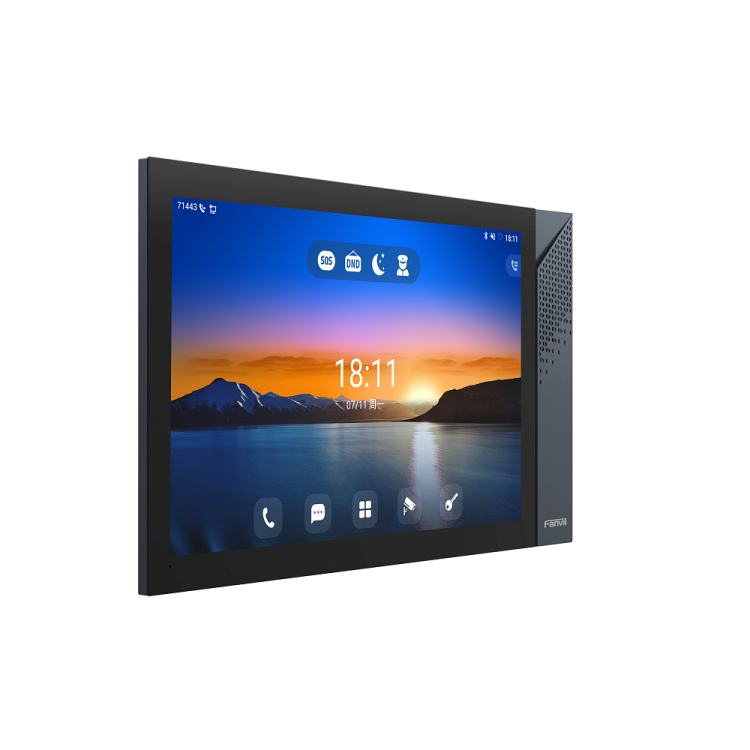 Fanvil i57A - внутренняя SIP-станция от Fanvil на ОС Android для ответа на аудио/видео-вызов с SIP-домофонов Fanvil и открытия двери одним нажатием; с поддержкой WiFi и большим сенсорным экраном 10,1 дюйма. Также из веб-интерфейса панели можно найти камеры, находящиеся в той же сети, и нажатием одной кнопки отображать на дисплее картинку с камеры.