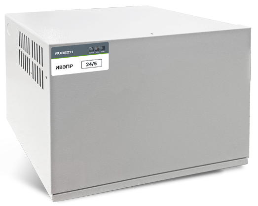 Импульсный источник питания номинальным постоянным напряжением 24 В и выходным током до 5 А. Предназначен для стабильного бесперебойного электропитания систем охранной и пожарной сигнализации, пожаротушения, дымоудаления и оповещения; U-вх.130...265 В, U-вых.13.4...13.8 В, I-вых.5 А (ном.), величина пульсаций 100 мВ, под два АКБ 12 В 40 Ач; выход "Авария" "СК", возможность подключения БР12; IP20, t-раб.-25...+50°С, 342х250х210 мм