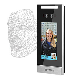 5" дисплей, две 2 Мп камеры КМОП 1/2.8" SONY Starvis, 0.01 лк (день) / 0.001 лк (ночь), H.265/Н.264/MJPEG, 1920x1080, до 25 к/с, IP54, 12 В, Beward Bi-Scan, распознавание лиц (до 10 000 пользователей), подключение считывателя по wiegand, двухфакторная идентификация, светодиодная подсветка, детекция маски, SIP