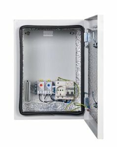 Комплектация: утеплитель из порилекса, замок 2 шт,ключ 1 шт, монтажная плата 1шт, гермовводы 2 шт (MG-25), розетка 1 шт, автоматический выключатель, 6А 1шт, клемма для подключения оборудования 2 шт, клемма заземления 1 шт, термореле 1шт, реле предстарта 1 шт, нагреватель мощностью 50 Вт 1шт.