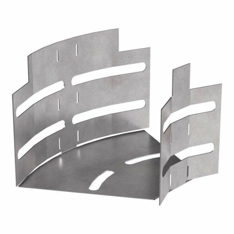 Этот угол предназначен для плавного соединения горизонтальных металлических кабельных лотков под углом от 0 до 45 градусов. Он позволяет легко менять направление кабельной трассы, обеспечивая аккуратный и надежный монтаж в системах среднего масштаба с лотками шириной 100 мм и высотой 80 мм.