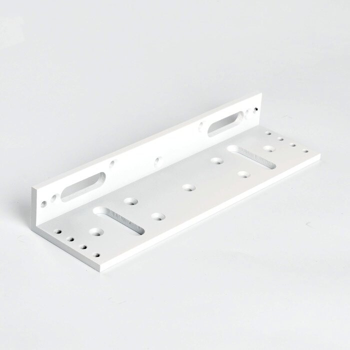 L образный уголок для замка с силой удержания на 500кг, цвет белый, толщина 6,5 мм, 266х76,5х38 мм.