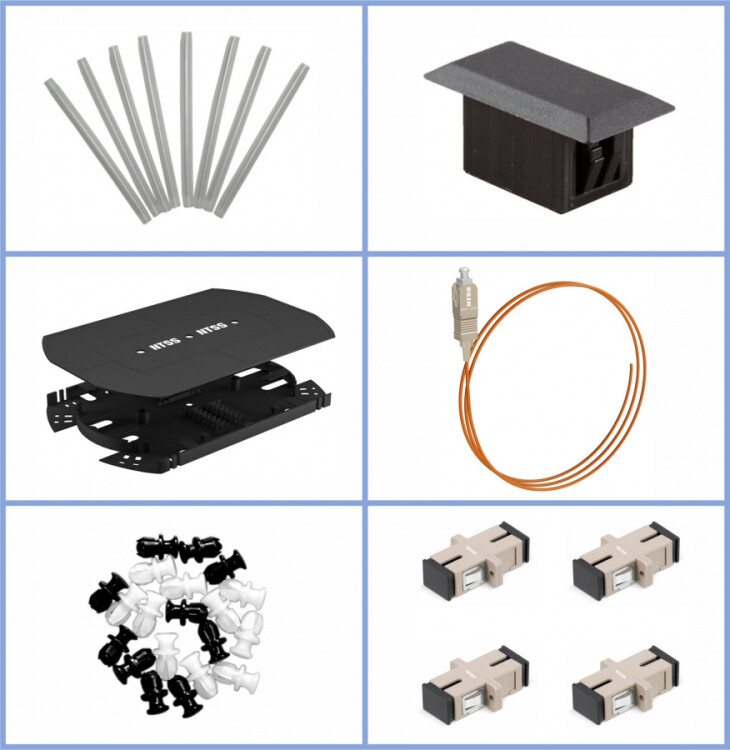 NTSS-RFOB-1U-4-SC/U-62.5-SP1.5G1AY-BL Кросс оптический 19"" укомплектованный 1U, 4 порта SC/UPC, 62.5/125 мкм (планки, сплайс-кассета, пигтейлы, КДЗС, адаптеры) черный RAL 9005 NTSS