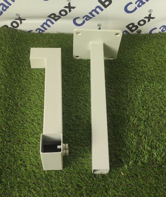 Так же применяется для установки в вентилируемые фасады, до обшивки здания вент.фасадами. Сначала, на этапе строительства устанавливается кронштейн с основанием и выводятся кабельные для камер видеонаблюдения внутри трубы. Потом обшивается фасад, после обшивки ставится вторая часть кронштейна с винтовым соединением, кабельные линии внутри кронштейна проходят в бокс 3F/180, на который и устанавливаются видеокамеры.
