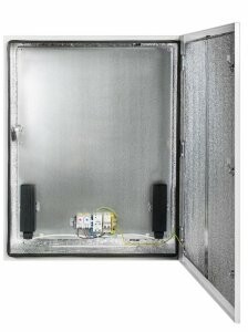 Комплектация: утеплитель из порилекса, замок 2 шт, ключ 1 шт, монтажная плата 1шт, гермовводы 5 шт (MG-25), розетка 1 шт, автоматический выключатель, 6А 1шт, клемма для подключения оборудования 2 шт, клемма заземления 1 шт, термореле 1шт, реле предстарта 1 шт, нагреватель мощностью 150 Вт 2 шт.