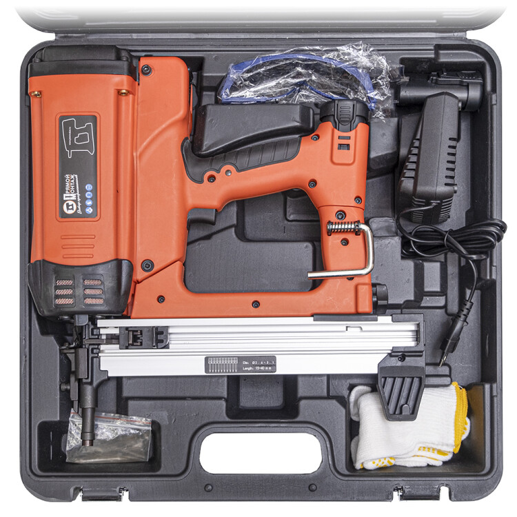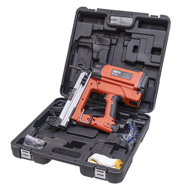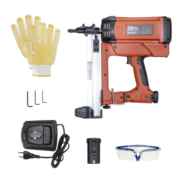 Газовый монтажный пистолет "Промрукав" предназначен для прямого монтажа различных изделий к основанию из бетона, металла или кирпича. Для данной модели монтажного пистолета не требуется компрессор и подключение к электросети. Область применения - Прямой монтаж распределительных коробок, пластикового и металлического крепежа, текстильных и металлических лент, и прочих инженерных систем, монтаж направляющих для гипсокартона и натяжных потолков, штукатурной сетки, гидроизоляционных мембран и теплоизоляционных материалов, фанеры к полу. Монтажный пистолет и множество аксессуаров уложены в надежный и практичный кейс, который защитит инструмент от грязи и пыли. Вес пистолета с АКБ 2 А-ч составляет - 3,7 кг. Вес кейса с пистолетом, двумя АКБ, зарядным устройством и аксессуарами составляет - 7,6 кг. В комплект входит: кейс, АКБ 2 Ач - 2 шт., ствол диаметров 11 мм., защитные очки, крюк, перчатки, ключ с шестигранной головкой - 3 шт., зарядное устройство, руководство по эксплуатации, гарантийный талон. Используемые раз