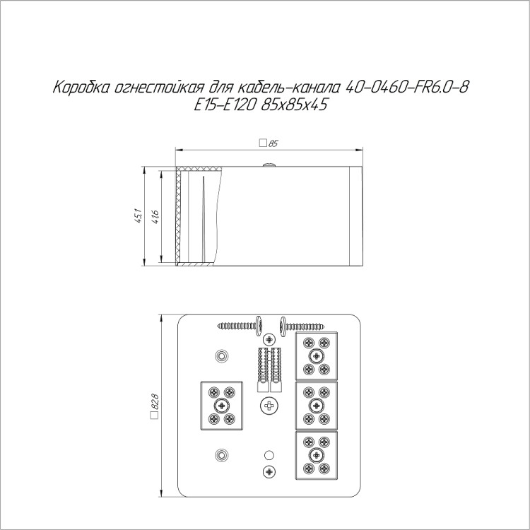 40-0460-1001-FR6.0-8 Коробка огнестойкая для кабель-канала Е15-Е120 RAL1001 85х85х45 (44 шт/кор) Промрукав