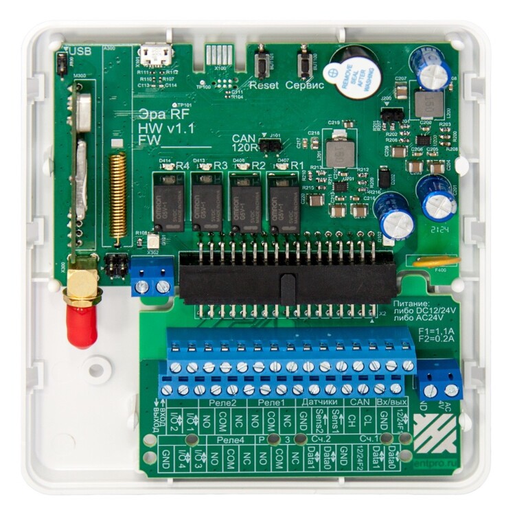 Радиоканальная система ЭРА-RF поддерживает работу в трех режимах:Радиореле; Радиосчитыватель; Контроллер управления шлагбаумом. Максимальная дальность в прямой видимости до 100 м Объем памяти: 7500 брелоков + 7500 ключей (при подключении считывателей); Подключение до 2 считывателей по Wiegand (от 26 до 64). Интерфейс связи CAN, USB. 12-24 DC; 24 AC, частота 433.9 МГц, питание внешних устройств 800 мА, -30...+50°C, 112x125x33 мм.