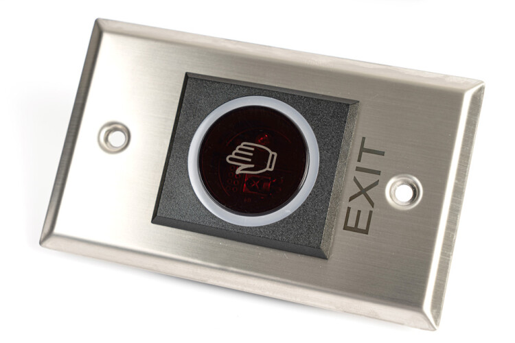 Кнопка выхода бесконтактная. Установка - врезная. Тип контактов - нормально разомкнутые/нормально замкнутые. Индикация - отсутствует. Материал корпуса - металл. Диапазон рабочих температур от -10 до +50. Габаритные размеры 86х86х29 мм.
