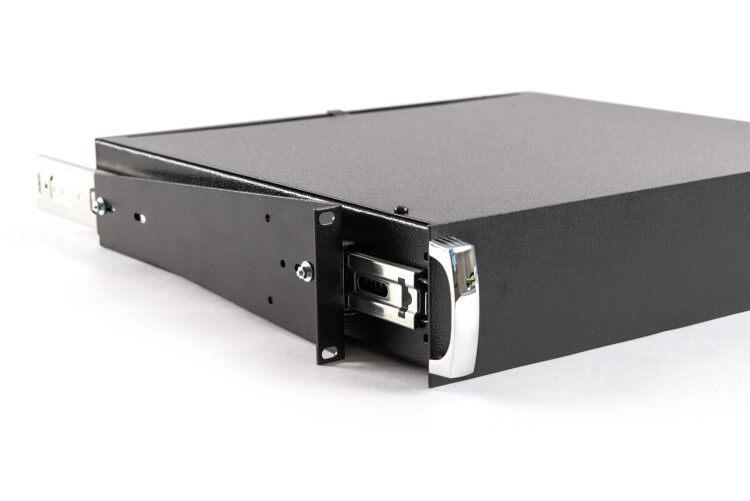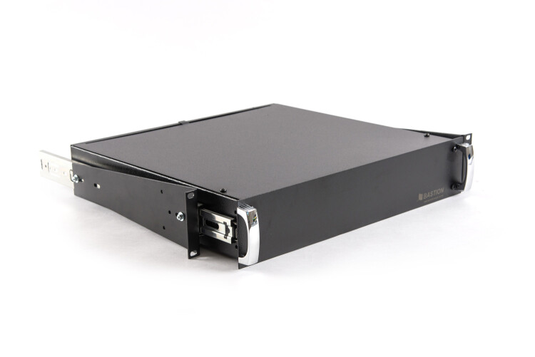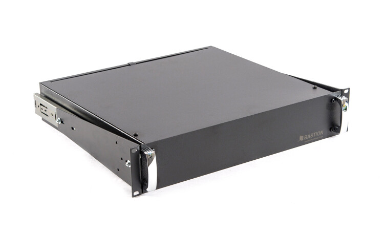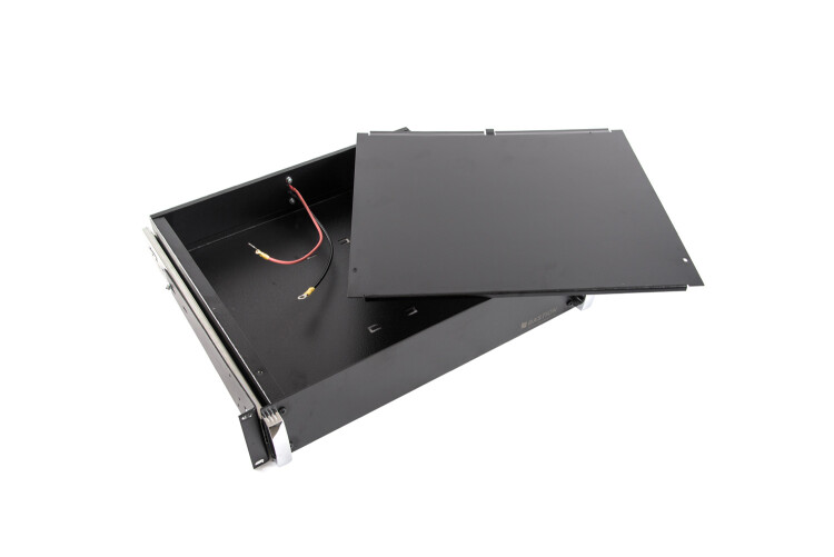 Аккумуляторный отсек под 4 АКБ 17 Ач, для установки в 19" шкаф, высота 2U. Выдвижные телескопические кронштейны, фронтальные ручки.