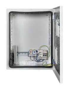 Комплектация: утеплитель из порилекса, замок 2 шт,ключ 1 шт, монтажная плата 1шт, гермовводы 2 шт (MG-25), розетка 1 шт, автоматический выключатель, 6А 1шт, клемма для подключения оборудования 2 шт, клемма заземления 1 шт, термореле 1шт, реле предстарта 1 шт, вентиляционная решётка с фильтром 2 шт, нагреватель мощностью 75 Вт 1шт.