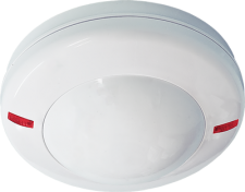 Оптико-электронный, потолочной установки, объемная зона обнаружения, диаметр зоны обнаружения 9м, при высоте установки 5м, -40…+50°С, 12В.