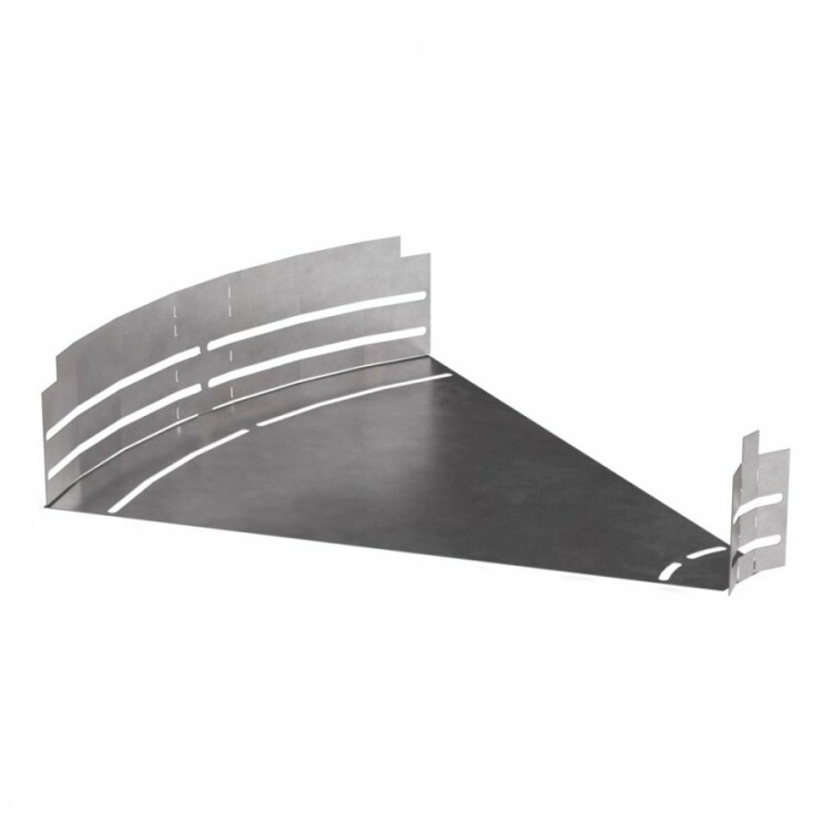 Это металлический угол для кабеленесущих лотков, который позволяет плавно изменять направление горизонтальной линии от 0 до 45 градусов. Конструкция подходит для участков с необходимостью точной подгонки угла, обеспечивая надежный переход между элементами кабельной трассы шириной 500 мм и высотой 100 мм.