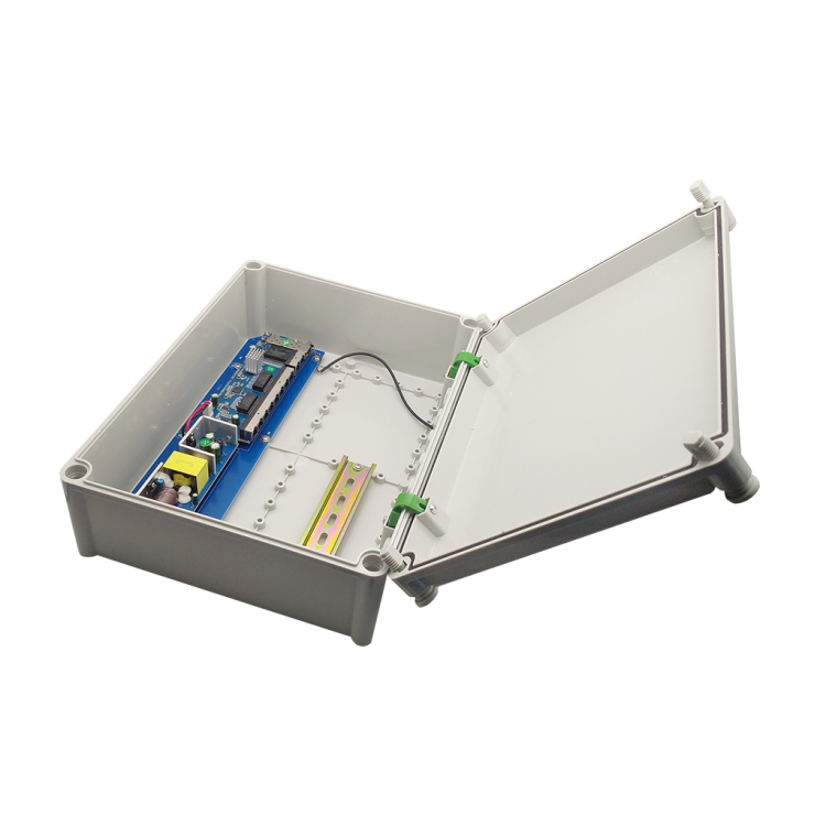 Источник питания ST-S89POE (2G/1S/120W/А/OUT)PRO, Switch POE 8-ми портовый,уличный для обеспечения проводных сетей напряжением 48В, защита от КЗ, Extend 250м., AI PoE, AI VLAN, Грозозащита, PoE порты: 8 х (10/100 Мбит/с), UpLink порты: 2 х (10/100/1000 Мбит/с), SFP порты: 1 х (10/100/1000 Мбит/с), Max.пропускная сп-ть: 100 Мбит/канал (PoE порты)1000 Мбит/канал (UpLink и SFP порты), Uвых: 48 (±10%), Р(ном) каждый порт (Вт): 19Вт, Р(макс) каждый порт (Вт): 30Вт, Р(сумм) общая (Вт): 120Вт, Тип РоЕ: А, Коммутационная способность (Гбит/с): 12,0Гбит/с, AI PoE(watchdog)/Vlan/Extend, Система охлаждения: пассивная, пластик, Температура эксплуатации: От -45° до +55°C, Степень защиты: IP67, Габаритные размеры ИП: 230*380*130 мм