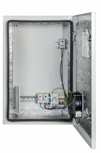 Комплектация: утеплитель из порилекса, замок 2 шт, ключ 1 шт, монтажная плата 1шт, гермовводы 2 шт (MG-25), розетка 1 шт, автоматический выключатель, 6А 1шт, клемма для подключения оборудования 2 шт, клемма заземления 1 шт, термореле 1шт, реле предстарта 1 шт, вентиляционная решётка с фильтром 1 шт, вентилятор с решёткой и фильтром 1 шт, нагреватель мощностью 100 Вт 1шт.
