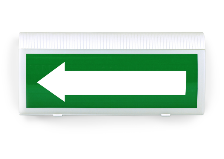 Оповещатель пожарный световой адресный радиоканальный (Табло). Изображение: «СТРЕЛКА ВЛЕВО». В комплект входят две батареи питания.