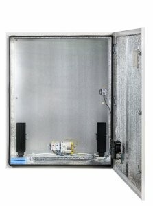 Комплектация: утеплитель из порилекса, замок 2 шт, ключ 1 шт, монтажная плата 1шт, гермовводы 5 шт (MG-25), розетка 1 шт, автоматический выключатель, 6А 1шт, клемма для подключения оборудования 2 шт, клемма заземления 1 шт, термореле 1шт, реле предстарта 1 шт, вентиляционная решётка с фильтром 1 шт, вентилятор с решёткой и фильтром 1 шт, нагреватель мощностью 150 Вт 2 шт.
