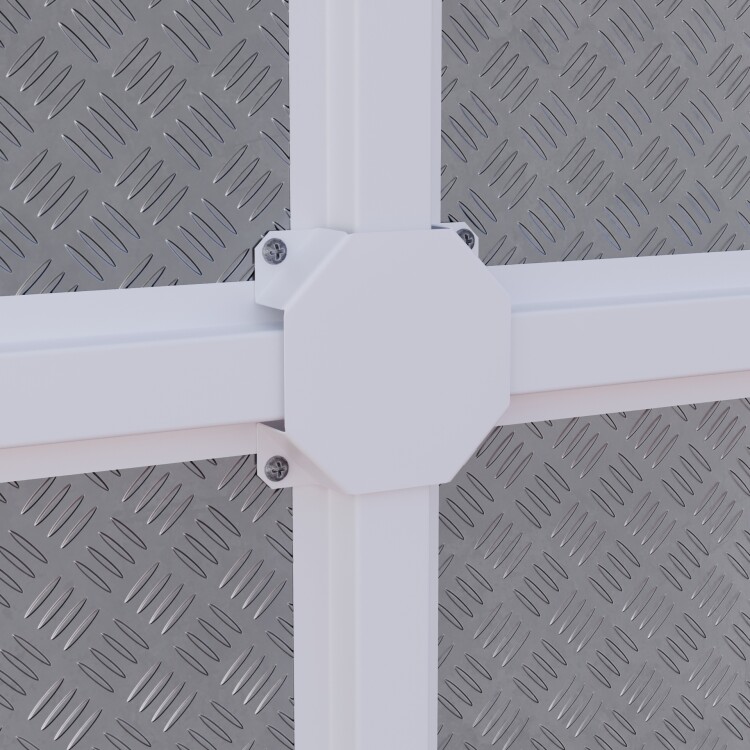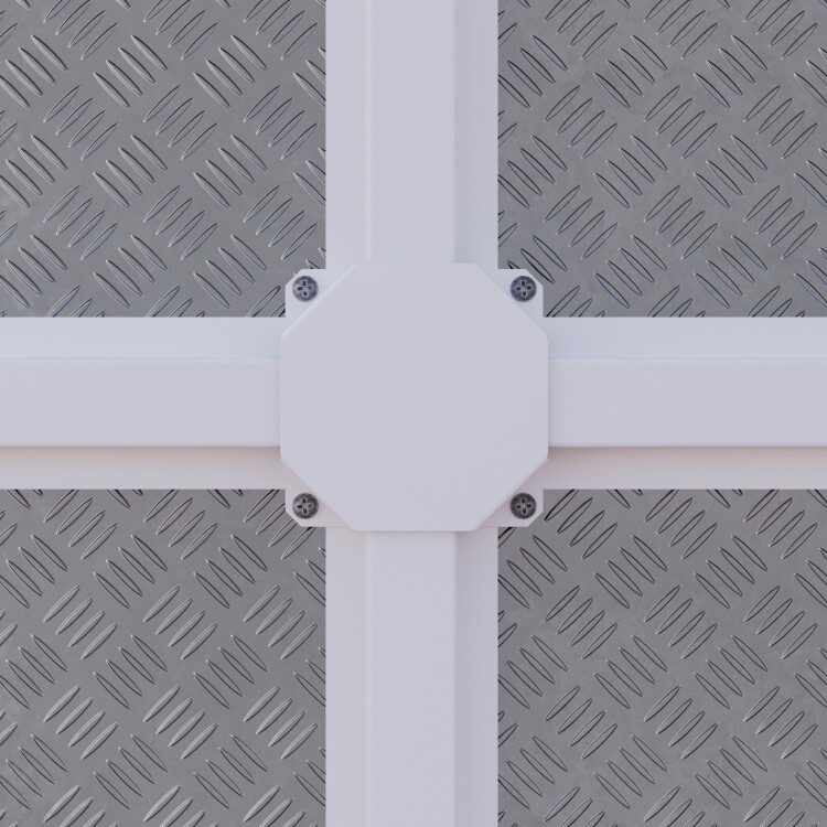 Х-образная накладка на защитный кожух для кабель-канала, металлическая; внешние размеры 90х90х22 мм, внутренние размеры 90х90х21 мм, отверстия 8 мм. Материал - Сталь Ст3 0.8 мм