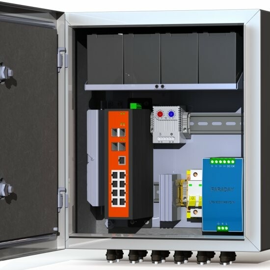 Промышленный управляемый коммутатор 8*PoE 802.3 af/at, 2*SFP - 1 шт. Оптический кросс 4 порта SC - 1 шт. Гермовводы 4*PG9, 4*PG13,5 -1 комплект. Цвет ral 7035 (серый)