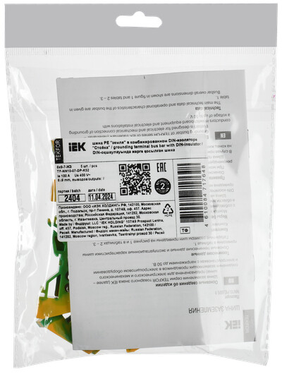 TF-NN10-07-DP-K52 TEKFOR Шина PE "земля" в комбинированном DIN-изоляторе "Стойка" 6х9-7-ЖЗ IEK