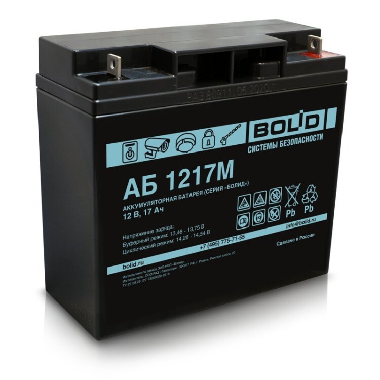 АБ 1217М Аккумулятор стационарный свинцово-кислотный с регулирующим клапаном 12В/17Ач Болид
