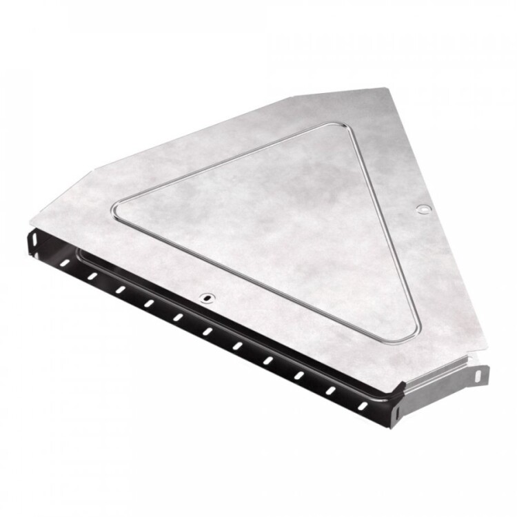 Угол изготовлен из оцинкованной ленты методом Сендзимира, что обеспечивает прочность и стабильность конструкции. В комплекте идёт крышка, которая защищает кабели от пыли и механических повреждений, облегчая монтаж и обслуживание трассы.