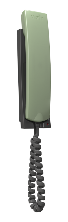 Устройство квартирное переговорное со световой индикацией и регулировкой громкости вызова. Цвет: трубки - фисташка, подставки - графит.