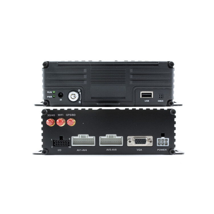 Автомобильный видеорегистратор. Подключение до 8-ми AHD/аналоговых камер видеонаблюдения, аудио 8 вх. GX16/1 вых. GX16, видео 8 вх. GX16/1 вых. GX16,/1 вых. VGA, разрешение 8*1080N 25к/с, 1 жесткий диск до 2Тб+1 карта SD до 256Гб, встроенные ультра конденсаторы. Дополнительные модули (опционально): GPS, 3G/4G, Wi-Fi.