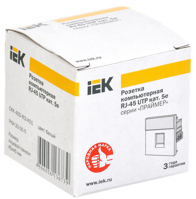 CKK-40D-RI2-K01 Розетка компьютерная РКИ-20-00-П RJ-45 UTP кат.5e (на 2 модуля) ПРАЙМЕР белая IEK