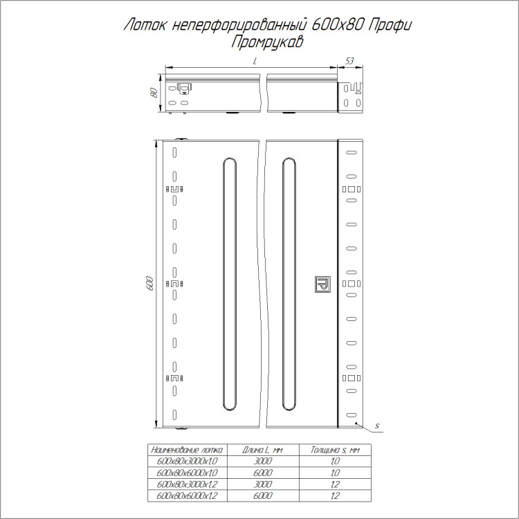 PR16.13720 Лоток неперфорированный Профи INOX (AISI 316) 600х80x3000 (1,2 мм) (6 м/уп) Промрукав