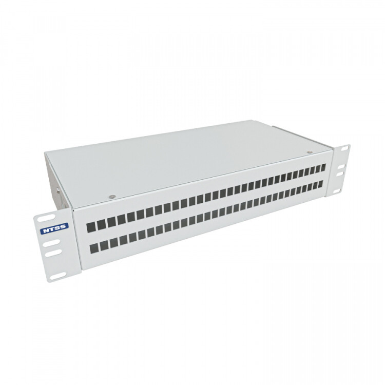 NTSS-RFOB-2U-64-2LC/U-62.5-SP1.5G0AY Кросс оптический 19"" укомплектованный 2U, 64 порта LC/UPC duplex, 62.5/125 мкм (сплошная панель, сплайс-кассета 4шт, пигтейлы, КДЗС, адаптеры) серый RAL 7035 NTSS
