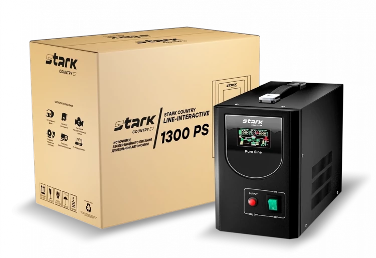 Мощность нагрузки, которую можно подключить к Stark Country 1300 PS - 1000 Вт. Пожалуйста, учитывайте пусковые токи индуктивной нагрузки!