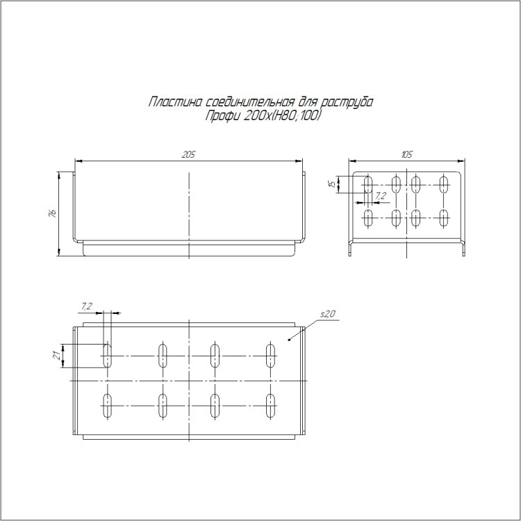 PR16.21358 Пластина соединительная для раструба Профи INOX (AISI 316) 200х(H80;100) (2,0 мм) Промрукав