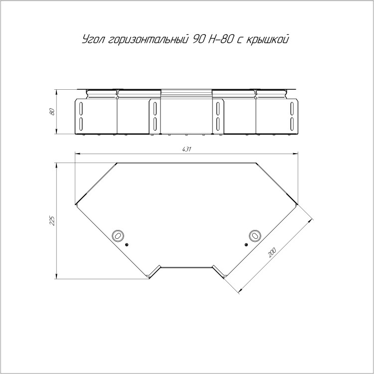 Это металлический угол для лотков серии «Стандарт» размером 200х80 мм, предназначенный для поворота кабельных трасс на 90 градусов в горизонтальной плоскости. Изделие подходит для монтажа как в перфорированных, так и в глухих кабельных лотках, обеспечивая надежное и аккуратное соединение с крышкой в комплекте.