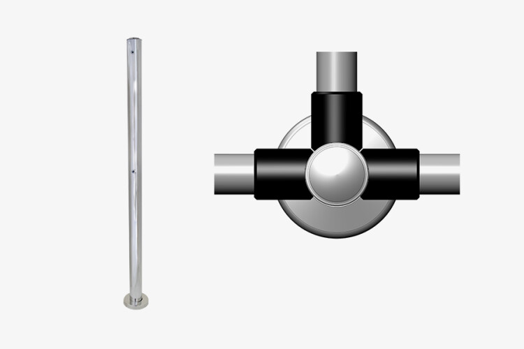 Стойка вертикальная СВ-2 (двухсторонняя) 3V предназначена для формирования модульного ограждения 3V. Модульное хромированное ограждение 3V предназначено для управления потоками людей на объектах.