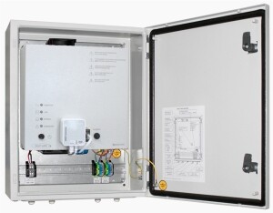 Металлический корпус уличного исполнения IP 65, мембранные кабельные вводы, замки, трубчатые наконечники для проводов в комплекте.. Внутренняя индикация режимов работы.