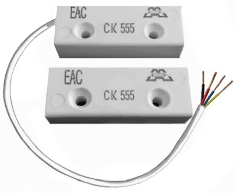 Датчик положения, пластиковый корпус,Нормально разомкнутый. Датчик положения магнитогерконовый СК555 (далее датчик) предназначен для блокировки дверных и оконных проемов, других конструктивных элементов зданий и сооружений на открывание или смещение с выдачей извещения о тревоге на пульт централизованного наблюдения, прибор приёмно-контрольный или концентратор размыканием шлейфа сигнализации контактами встроенного геркона. Датчик предназначен для открытой установки на поверхности охраняемой конструкции.