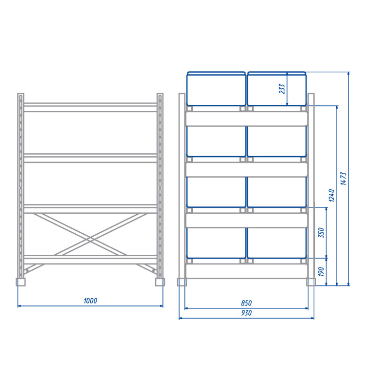 Для 40 АКБ по 120 Ач Количество ярусов: 4 Количество АКБ в ширину х в глубину: 5х2 Габариты (ШхГхВ): 1000х930х1275 мм Грузоподъемность стеллажа / полки: до 2000 / 500 кг Кислотостойкое, диэлектрическое покрытие